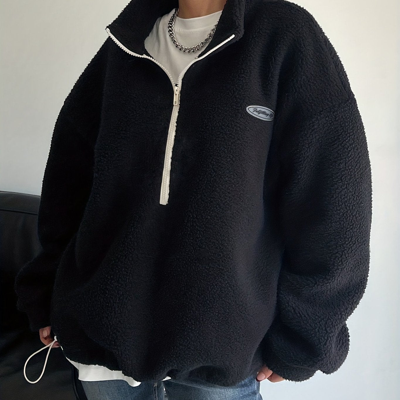 Design: Half-zip with patchwork details