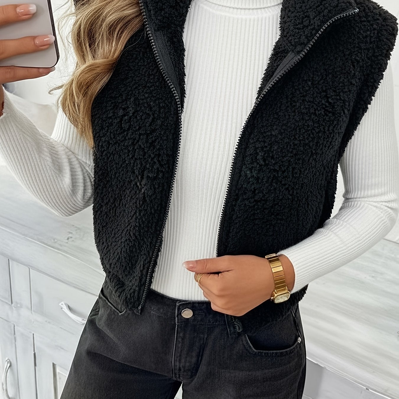 Add the Delia™ Fleece Vest to your cold-weather wardrobe — effortless, cozy, and made to style your way.