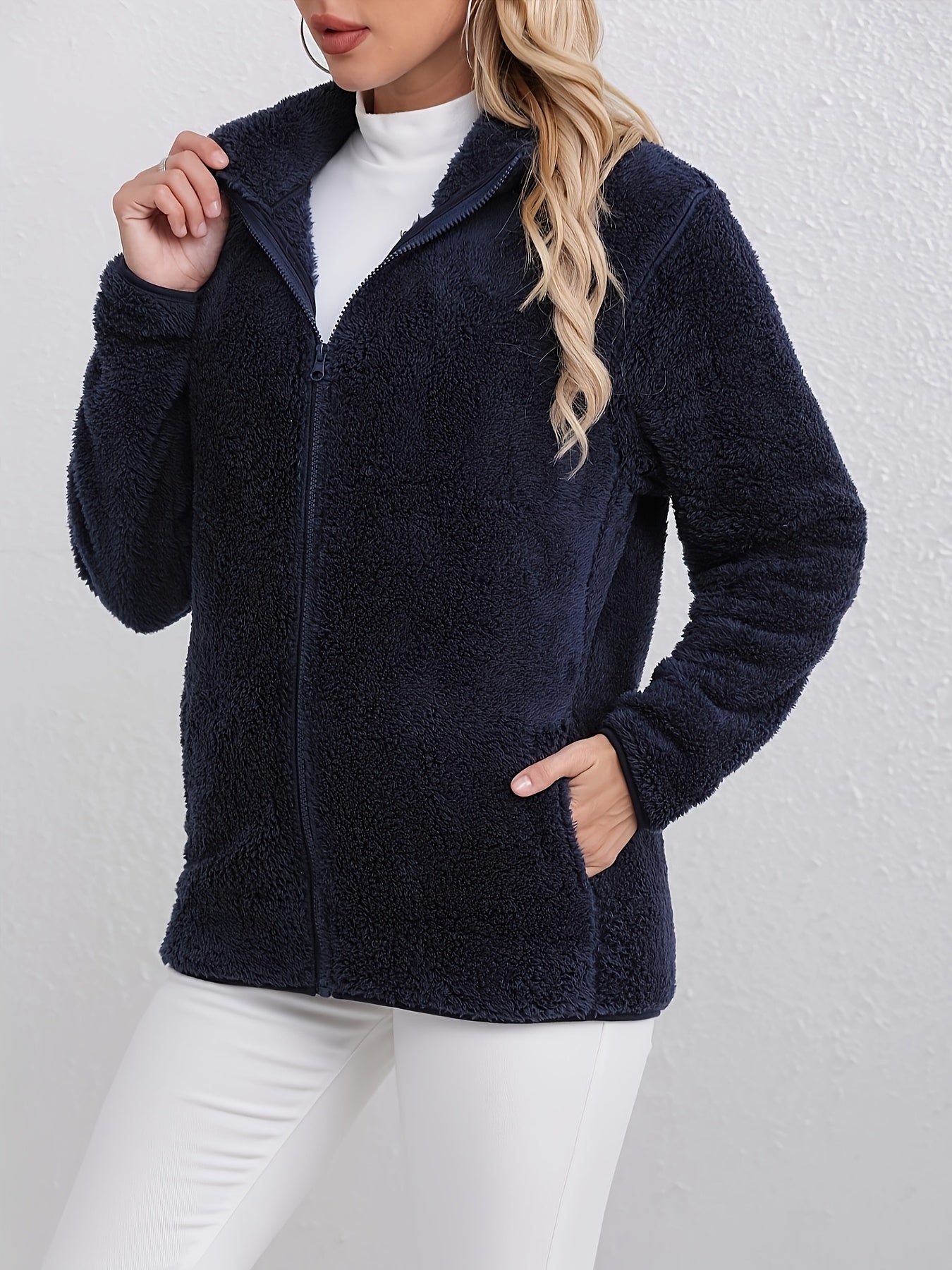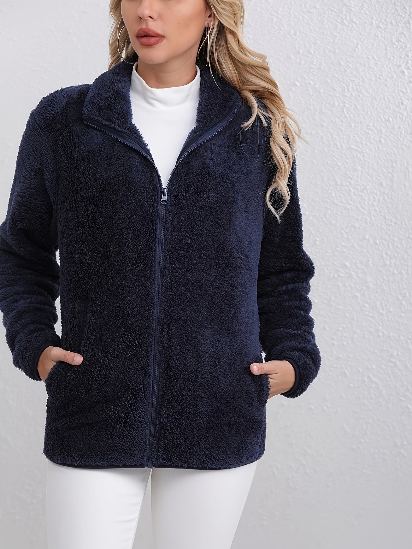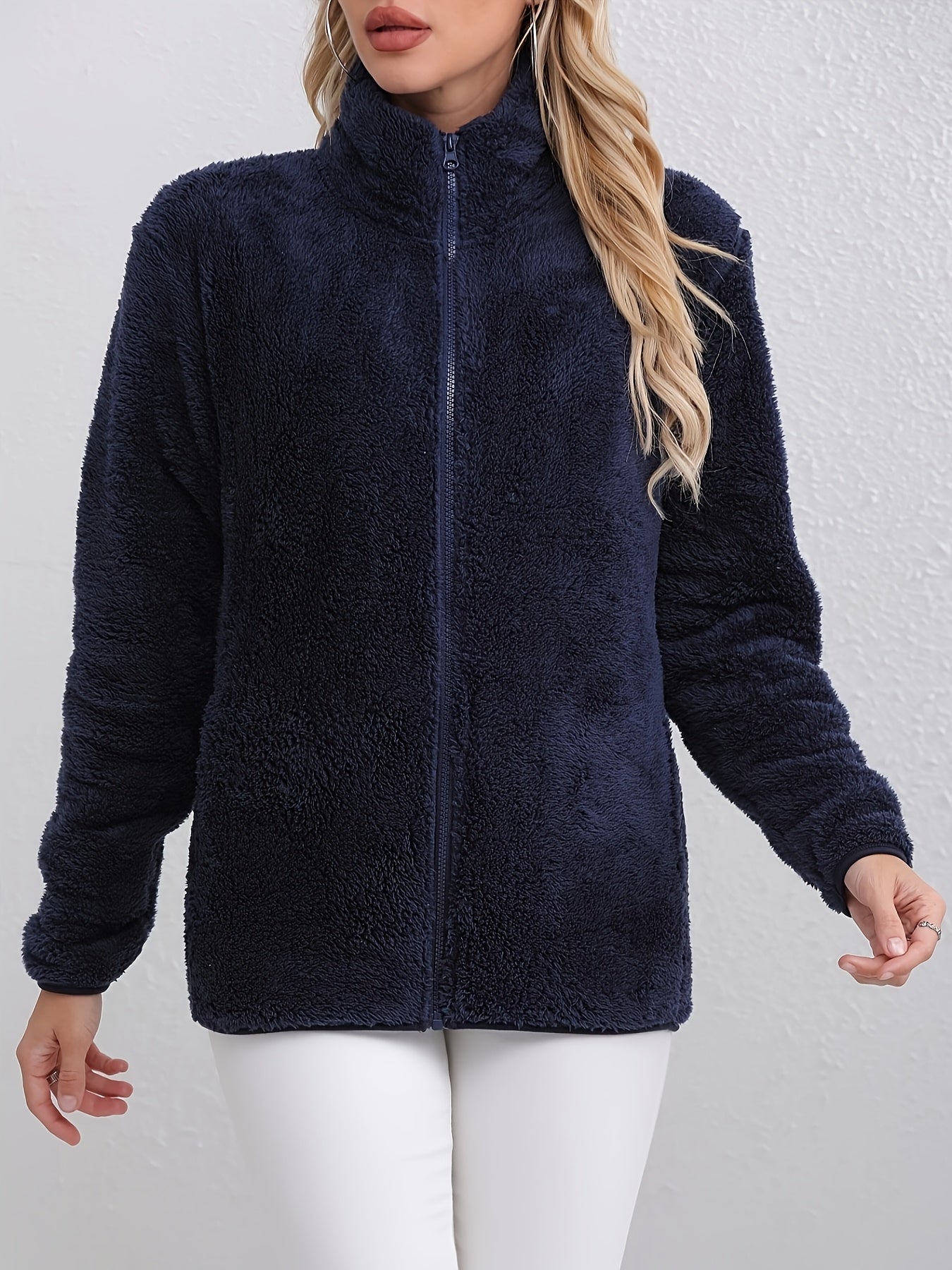With its classic silhouette, soft thermal fleece, and smooth zip-up front, the Vivienne™ Fleece Jacket offers a polished look without sacrificing comfort. Designed in a deep navy tone with clean lines and a tailored fit, it transitions seamlessly from weekday meetings to weekend strolls.